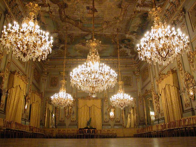 - Salón de Baile del Palacio Real de Aranjuez, decorado a finales del siglo XIX, que ocupa el centro del ala este.